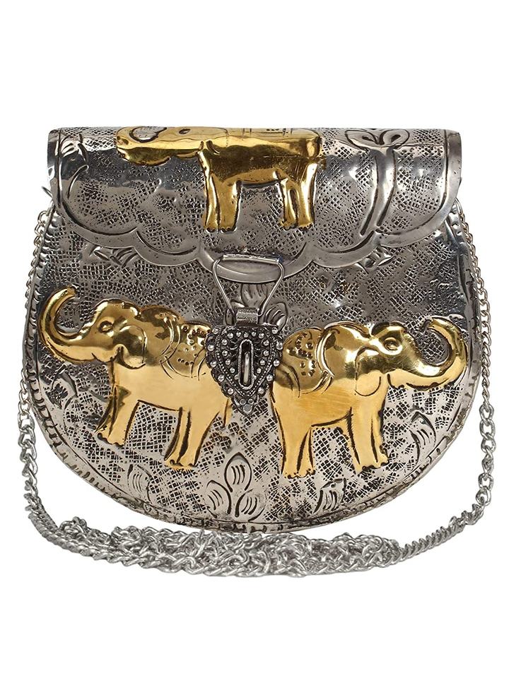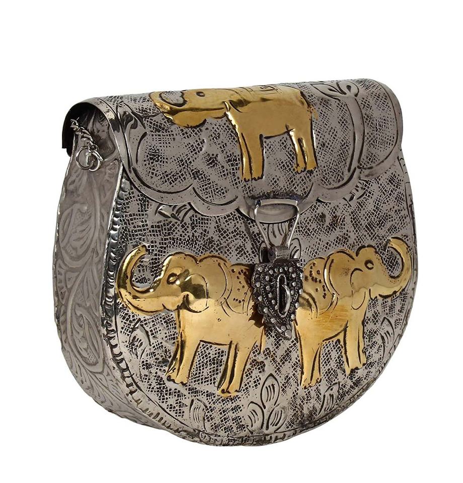 Sac à main en métal argenté sac suspendu conception d'éléphant gravure à la main pochette de soirée pour femmes et filles conception conique d'oeil