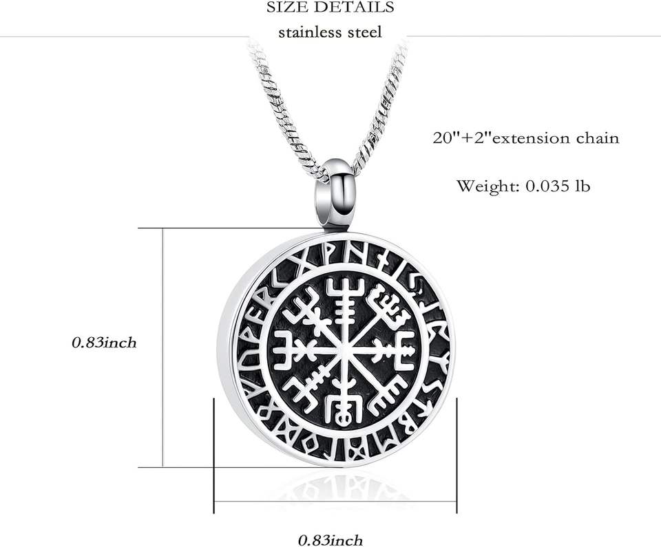 Argent métal Viking runique boussole urne crémation bijoux taille personnalisée collier commémoratif pour hommes pour garder les cendres près