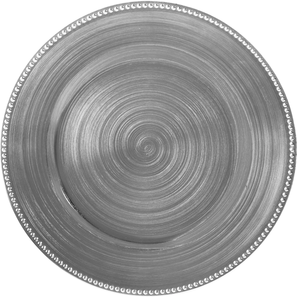 Plaque de charge métallique argentée avec finition brossée tourbillon et bord perlé
