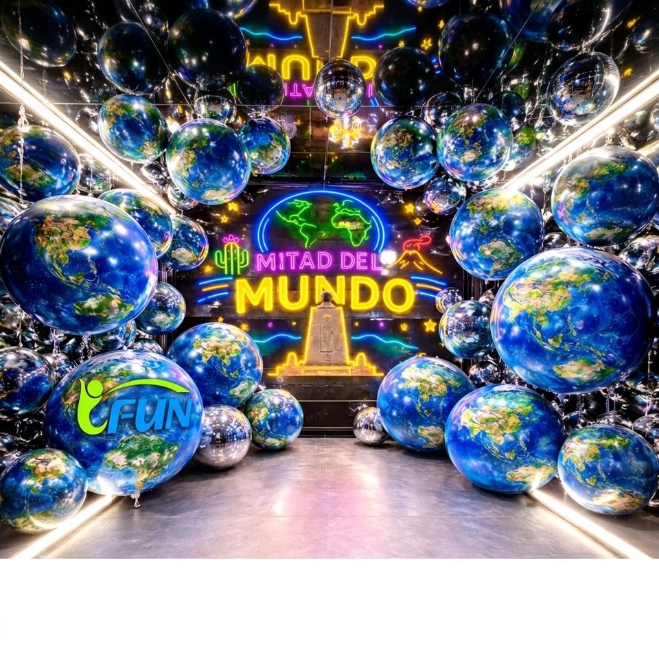Globe miroir argenté gonflable, ballon imperméable, pompe électrique, grande sphère brillante réfléchissante pour la décoration de Noël, de discothèques et de fêtes