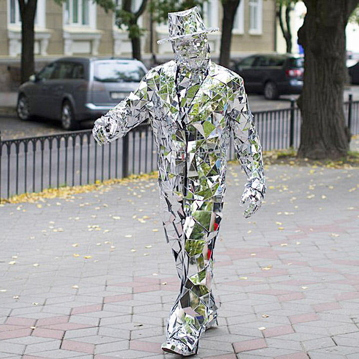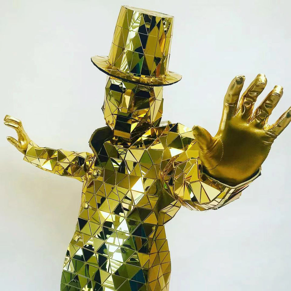 Costume homme miroir argenté/véritable Costume de marcheur à échancrure Robot Led/Costumes femmes adultes Cosplay