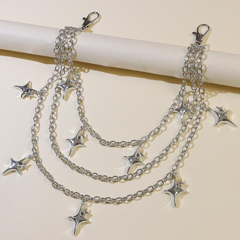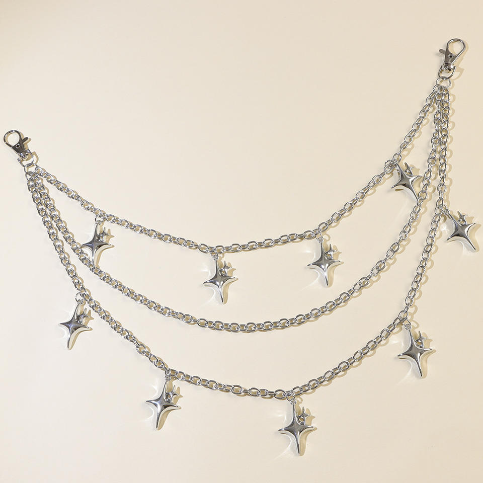 color:Silver multi-layered double-glitter star pants chain