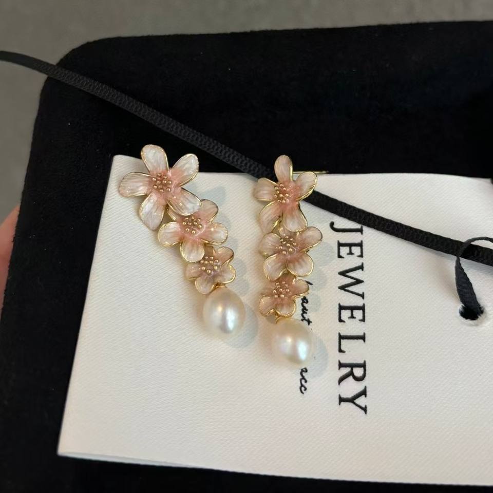 Silver Needle & Pink Drip Oil Pearl Earrings Elegant Korean Charm Small High-End Fine Dangle Earrings for Women