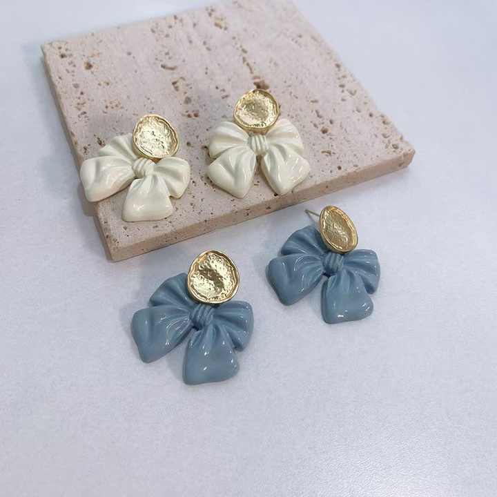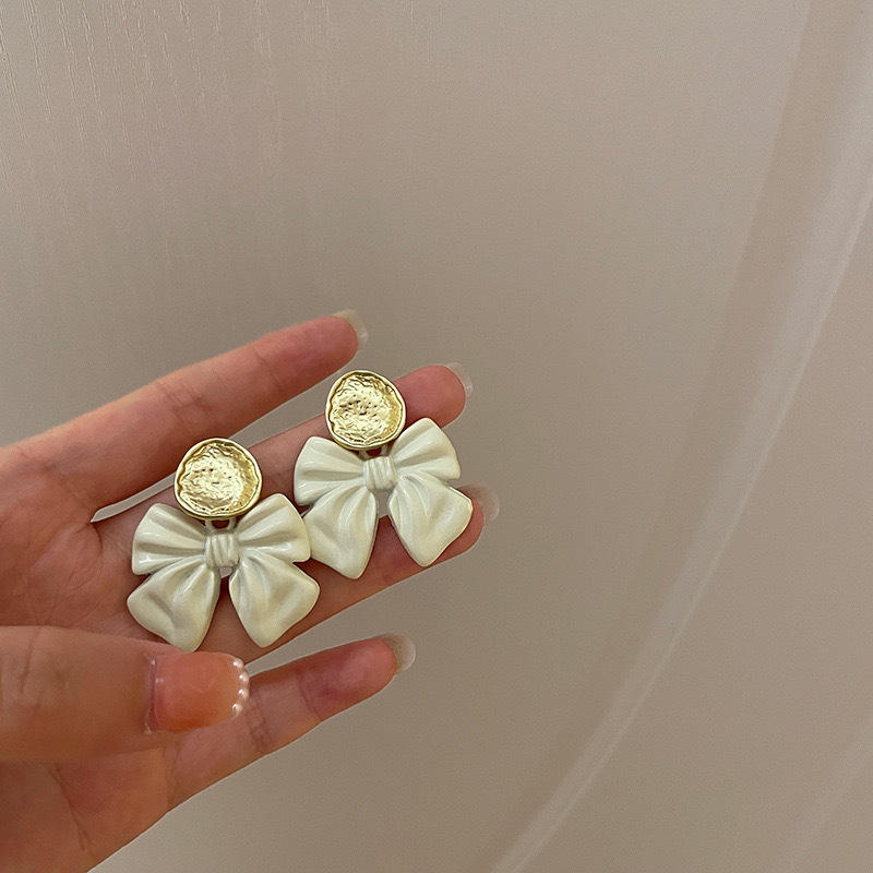 Silver Needle Sweet Girl Big Bow-shaped Decorative Earrings, Aiming for Pure Fashion Style