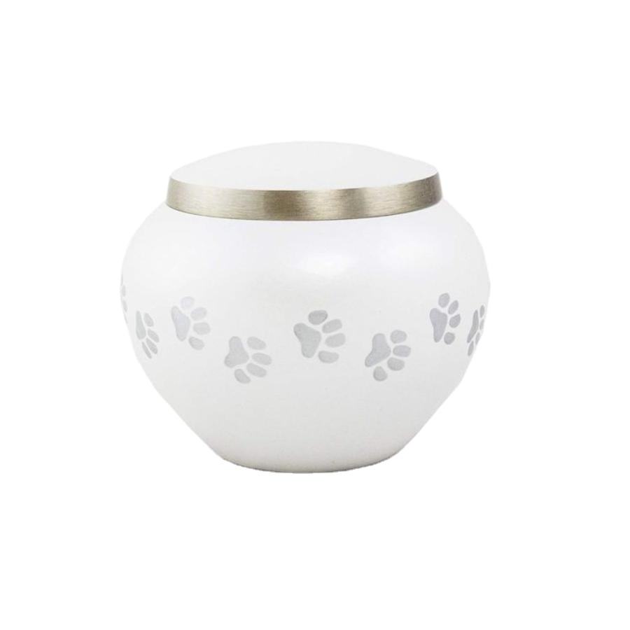 Silver Pawprint Band White Odyssey Cremation Urn Keepsake Pet Ashes Small Urns Portable Cat And Dog Cremation Urns For Funeral