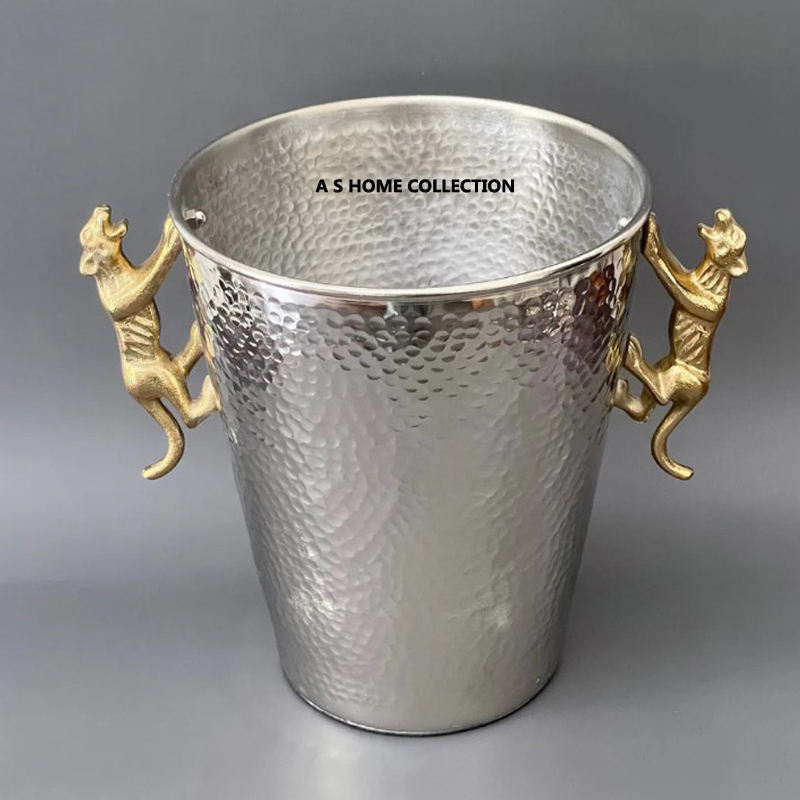 Métal en aluminium plaqué argent avec poignées latérales dorées créatives Design Seau à glace Champagne commercial européen