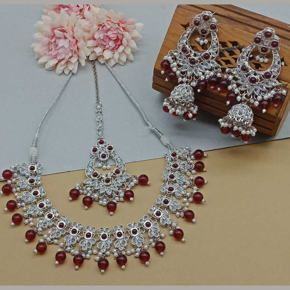 Ensemble de bijoux de mode plaqué argent avec pierre de cristal et perles 10581268MR collier
