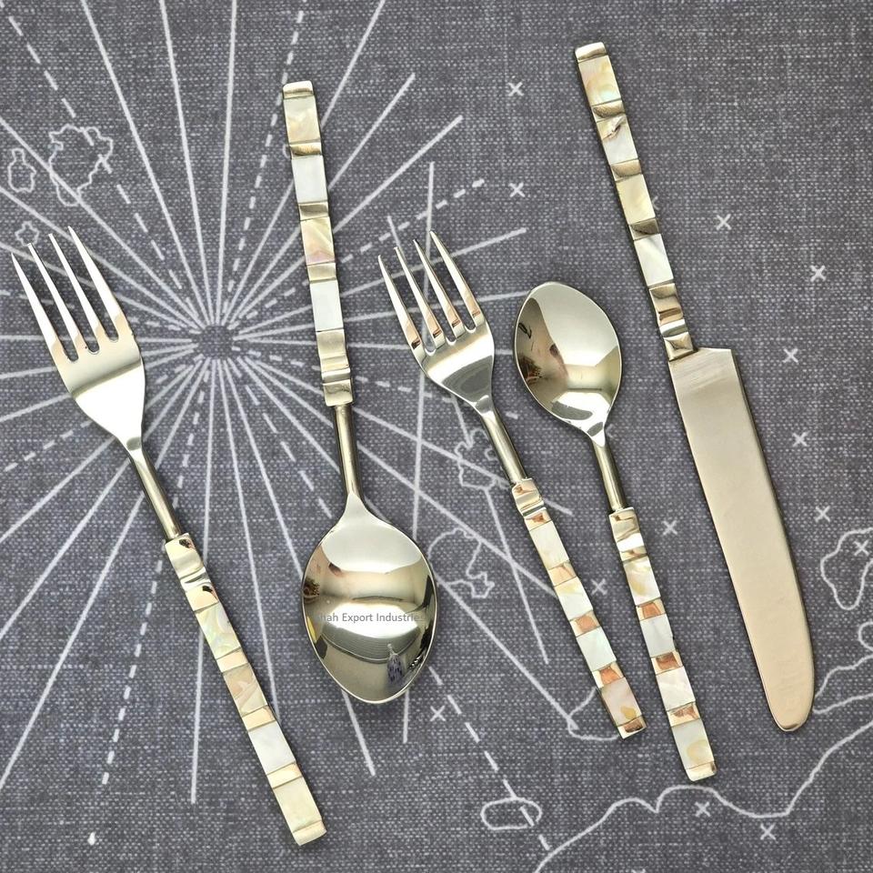 Ensemble de couverts en métal plaqué argent avec poignée en nacre pour ensembles de couverts de vaisselle de table d'hôtel et de mariage