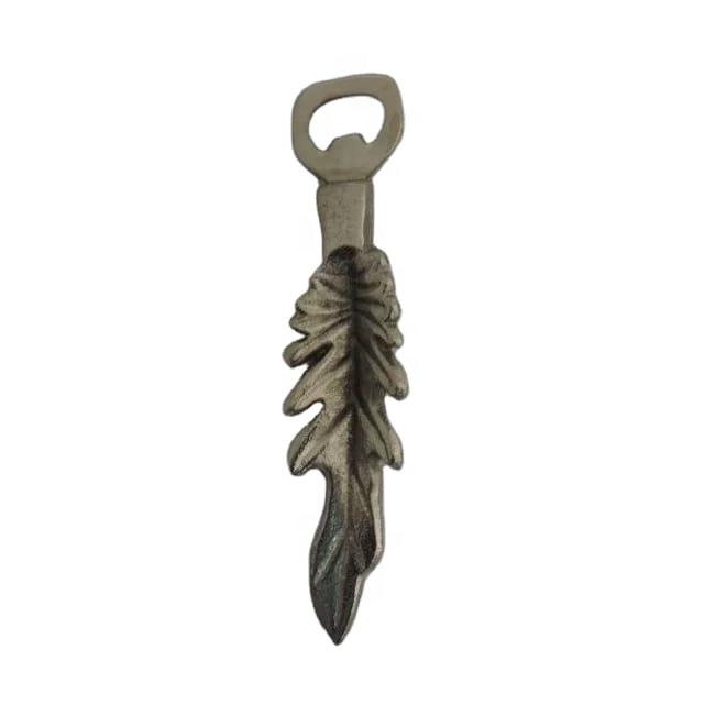 Ouvre-bouteille en forme de feuille en métal plaqué argent, haute qualité, vente chaude, Logo personnalisé, sac d'impression, cadeau, argent or, boîte en acier émaillé