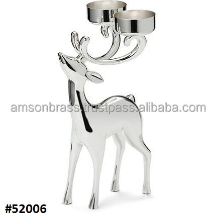 Bougeoir en métal argenté décor d'anniversaire renne