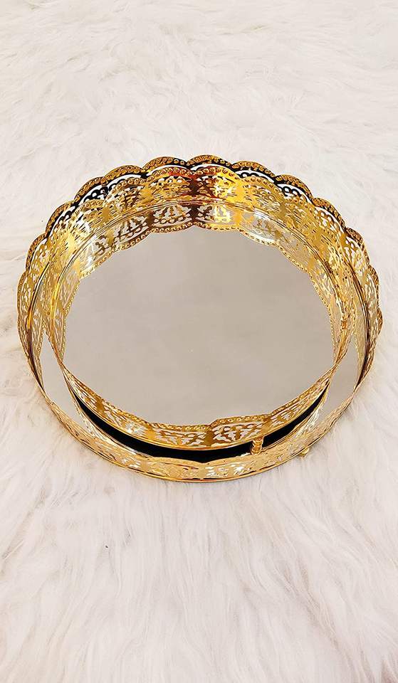 Plaque de service en métal plaqué argent plateau gravé griffe pieds côtés percés grand ovale pour une utilisation à la maison et à l'hôtel