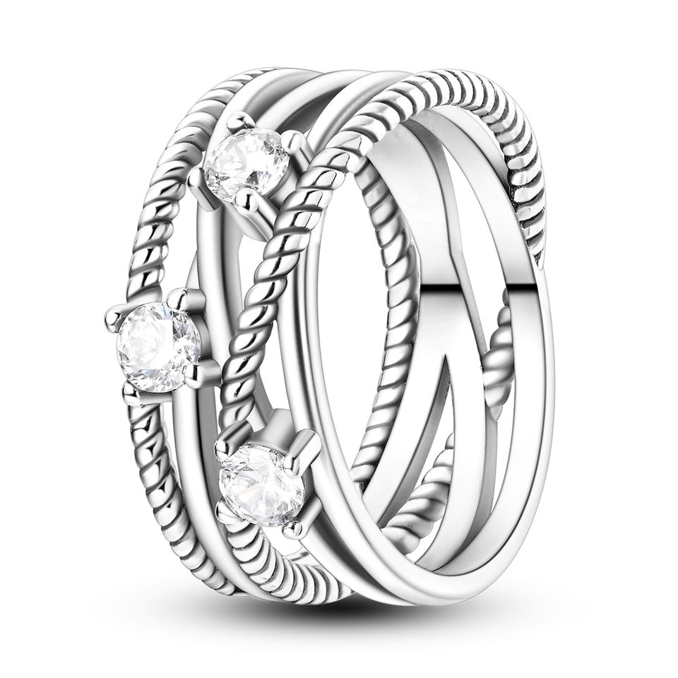 Bagues en argent plaqué brillant entrelacées pour fiançailles, mariage, anniversaire, fête ou cadeau