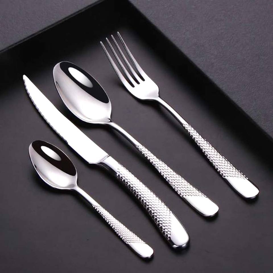 Ensemble de couverts réutilisables en métal poli argenté couteau fourchette cuillère et fourchette vaisselle en acier inoxydable ensembles de couverts