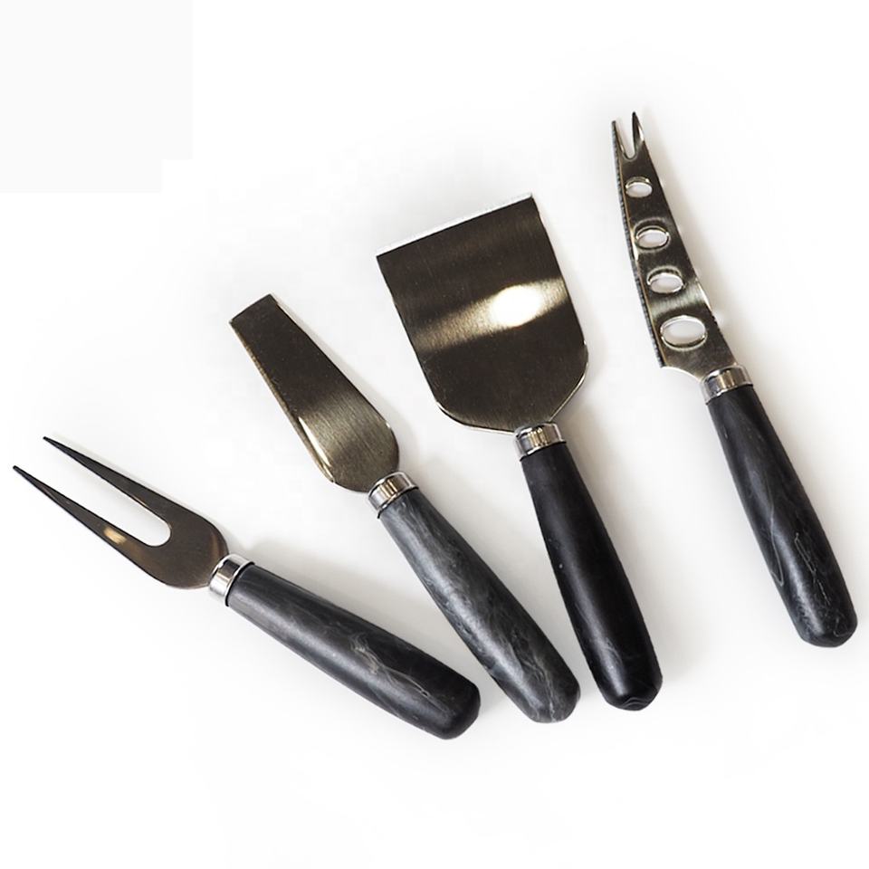 Service à fromage de luxe en acier inoxydable poli, argenté, rose, fait à la main, poignée en résine en marbre noir, vaisselle de table, style Royal