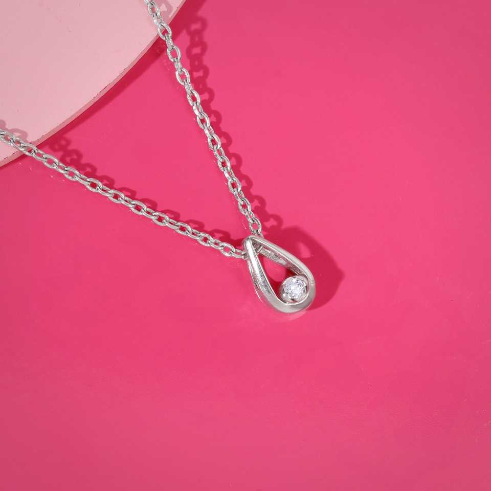 Pendentif en argent avec joli diamant et chaîne à maillons Design de goutte élégant et charme élégant