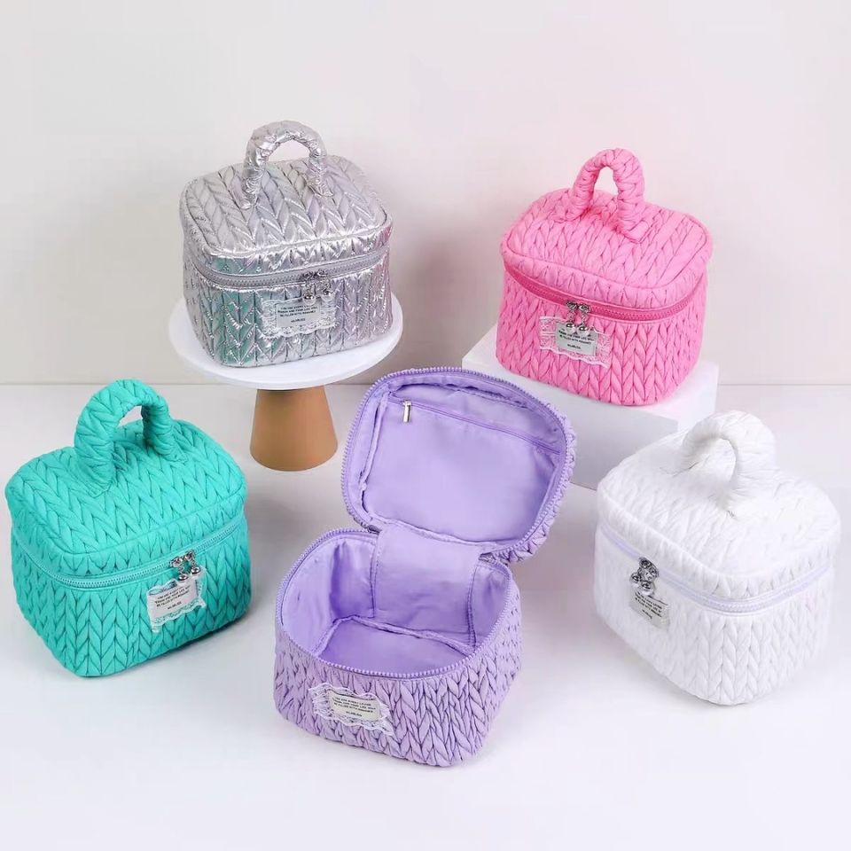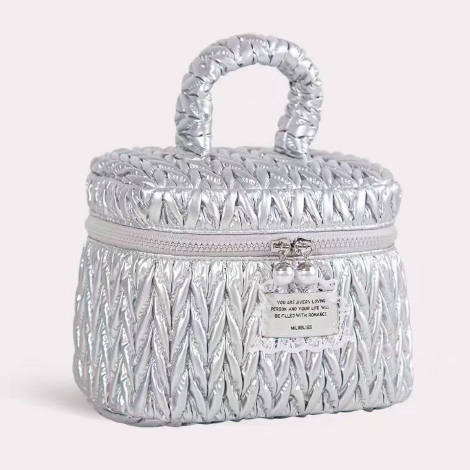 Ensemble de trousse de maquillage matelassée argentée Véhicule matelassé multi-brins en nylon imperméable écologique-logo