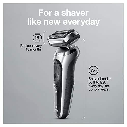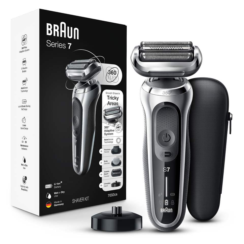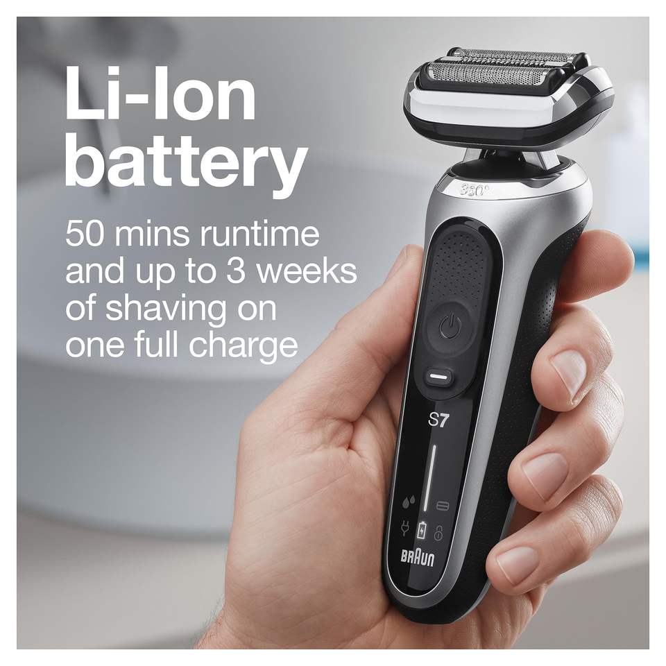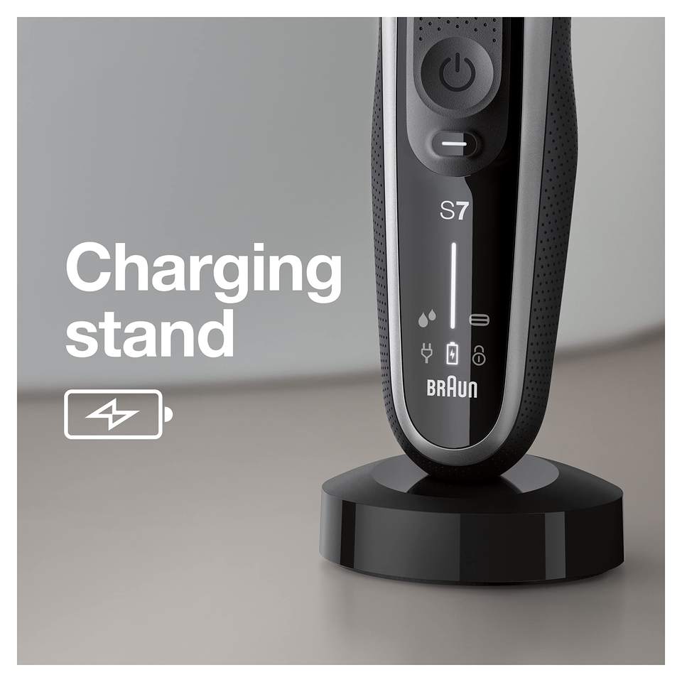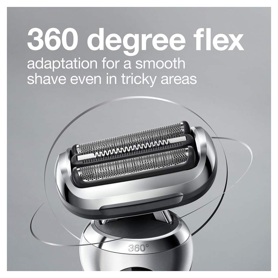 Rasoir Électrique Rechargeable Sans Fil Argenté pour Hommes, Tondeuse Flexible avec Support de Charge, Utilisation Humide et Sèche à Cinq Lames IPX7