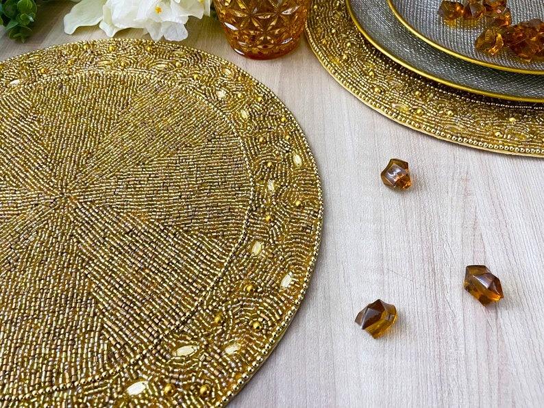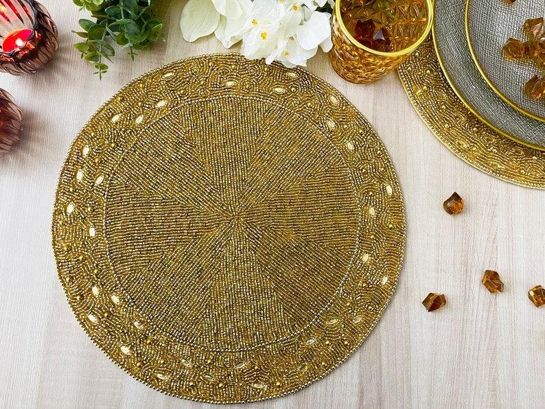 Sets de table de luxe écologiques en broderie à la main avec des perles argentées pour les mariages, les événements spéciaux, les tableaux de table modernes, la décoration élégante de la maison