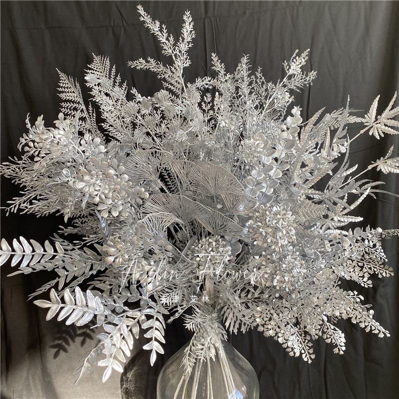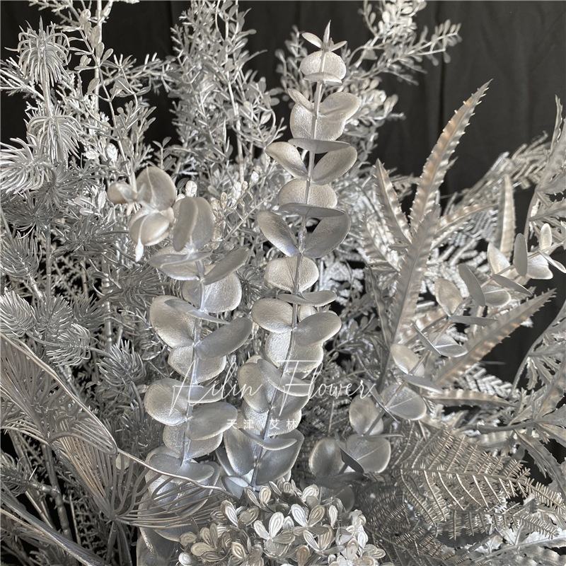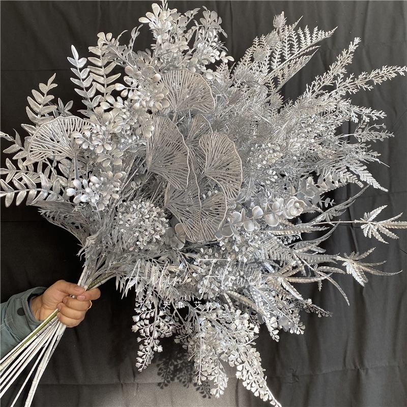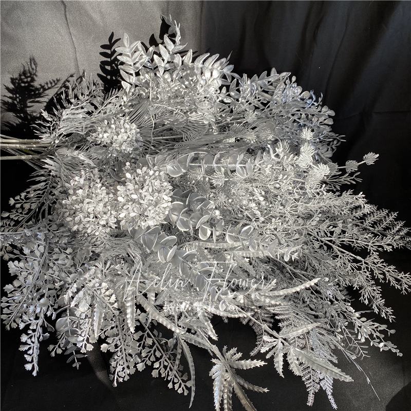 Arrangement de fleurs en plastique préservé de brouillard de brouillard de glace de plafond décoratif de salle de mariage de série argentée