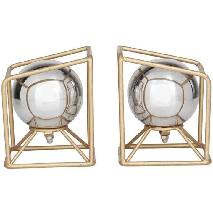 Sphère en argent dans un cadre géométrique en or, design artistique moderne fait main, paire, artisanat en métal rustique écologique pour la maison