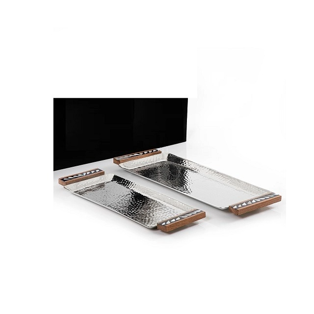 Plateau de service en métal argenté en acier inoxydable pour restaurant, plateau décoratif moderne en métal pour fruits, plateaux de service domestiques en métal