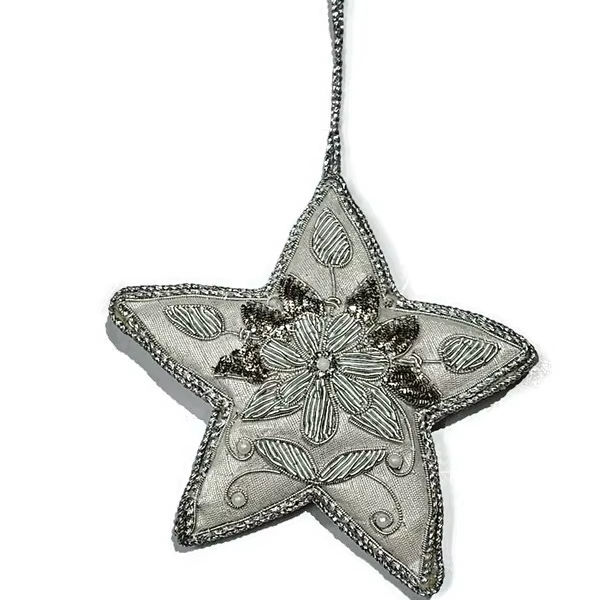 Ornement d'étoile d'argent broderie perlée décor de vacances rustique pour intérieur fait à la main utilisation extérieure décoration d'arbre de Noël de luxe