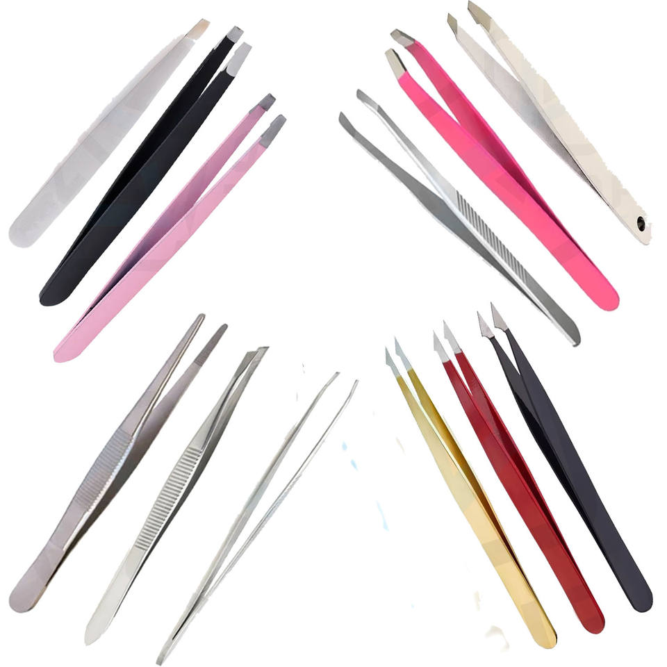 Pince à épiler en acier inoxydable argentée, petite et maniable, avec étiquetage personnalisé, pointe inclinée pour une épilation facile des poils incarnés