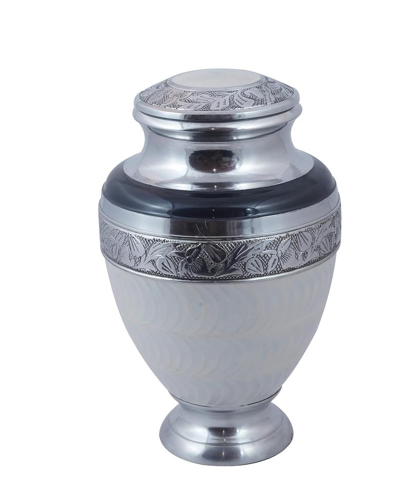 Urne de crémation pour adultes gravée à bordure supérieure en argent pour cendres humaines-Urne funéraire artisanale pour cendres commémoratives-Grand enterrement