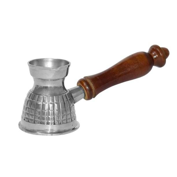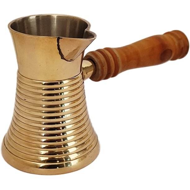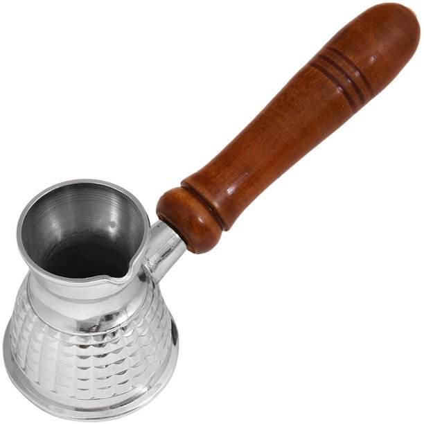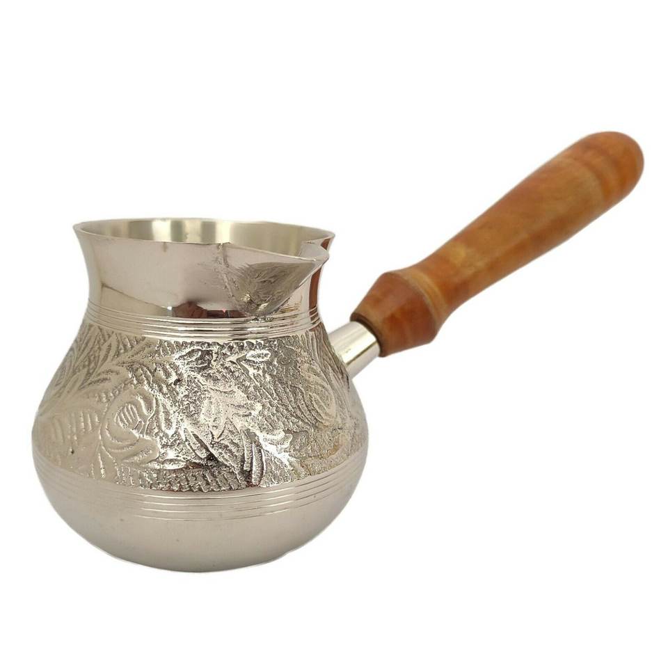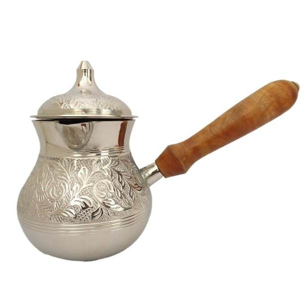 Cafetière en argent turc grec arabe, cafetière en métal en laiton avec poignée en bois (petit-12 Oz)