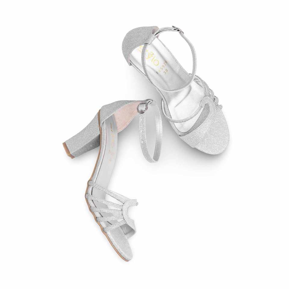 Silver Women's Heeled Sandals with Open Toe Fashionable Lace-Up Ankle Strap FN5976 for Summer