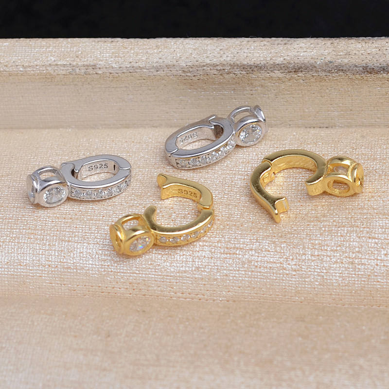 Accessoire de bijouterie en zircon argenté DIY, boucle de collier vide 5-7 mm JG5990 avec finition plaquée, emballé dans un sac