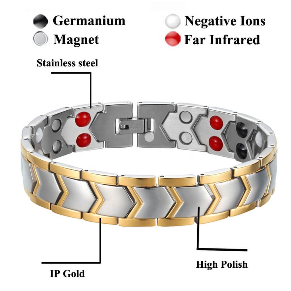 Bracelets en acier inoxydable argent et or Bracelets magnétiques d'arthrite pour hommes Bracelet d'équilibre bioénergétique