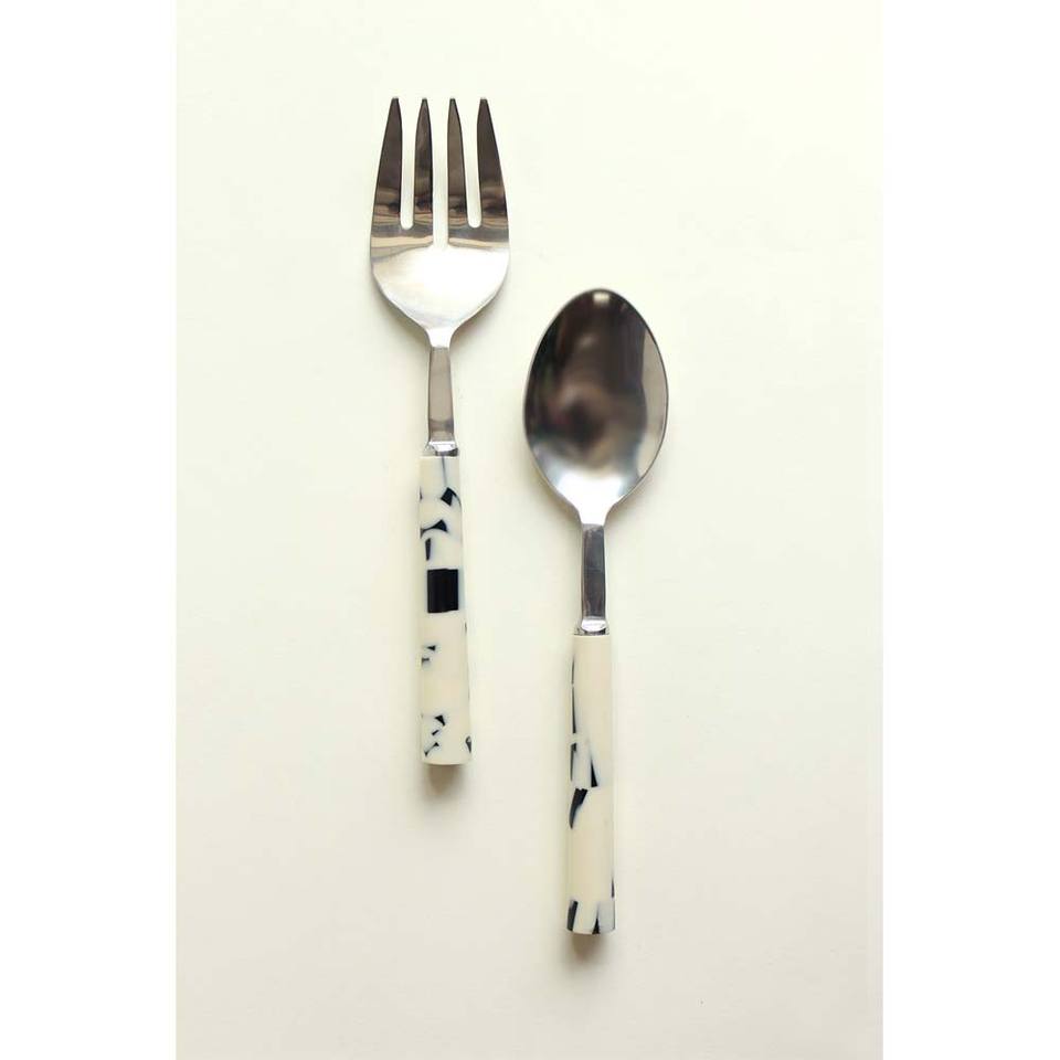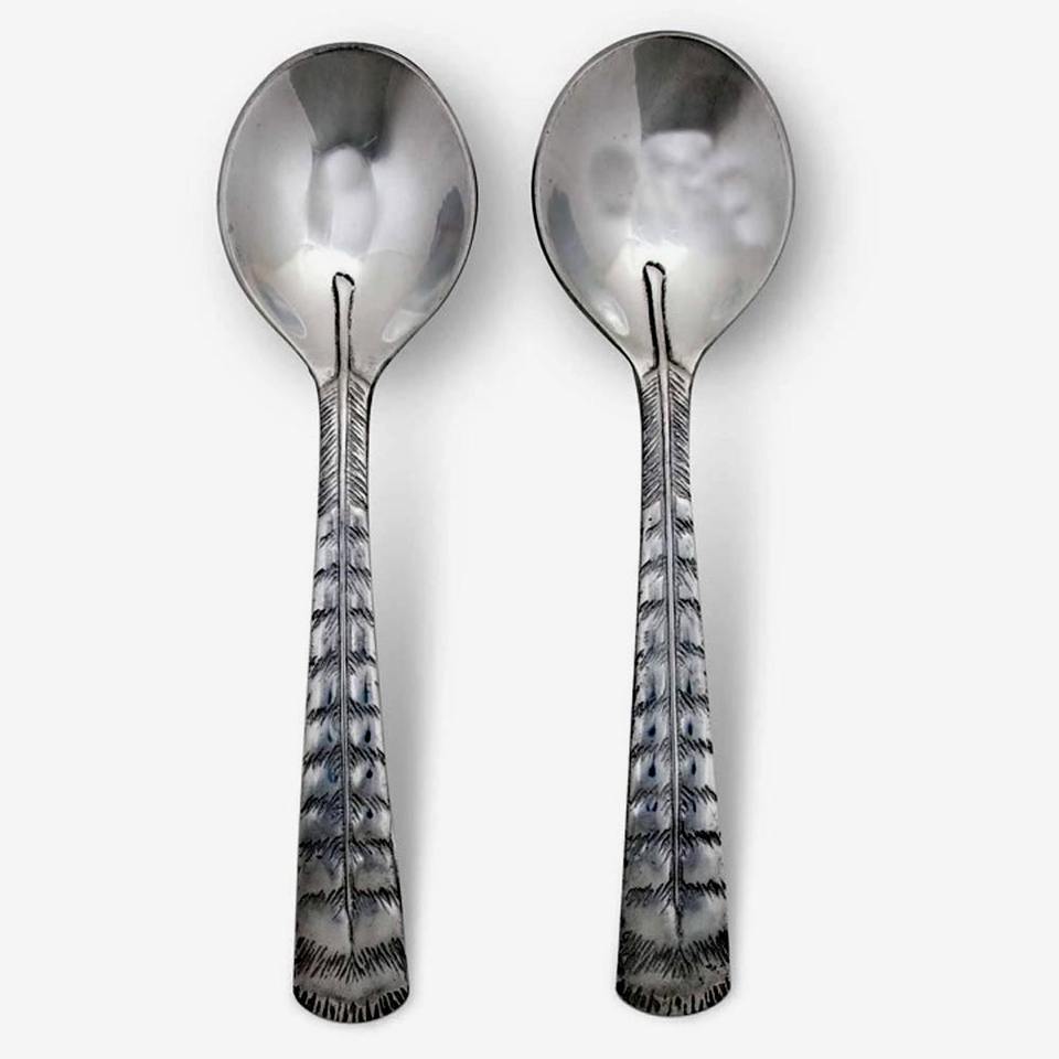 Ensemble de cuillères et fourchettes à salade en argent poli, ustensiles de cuisine de Table de mariage, vaisselle décorative, fil à boucle longue, ensemble de poignées à nœuds