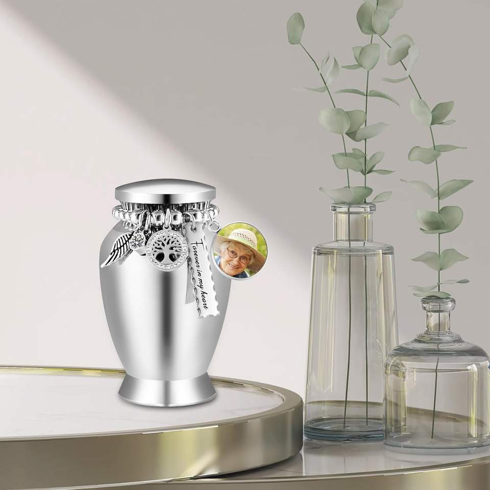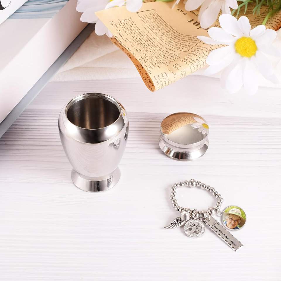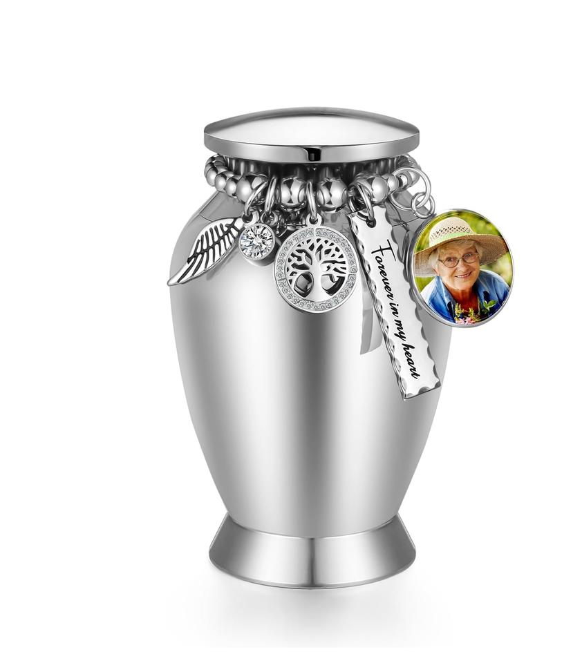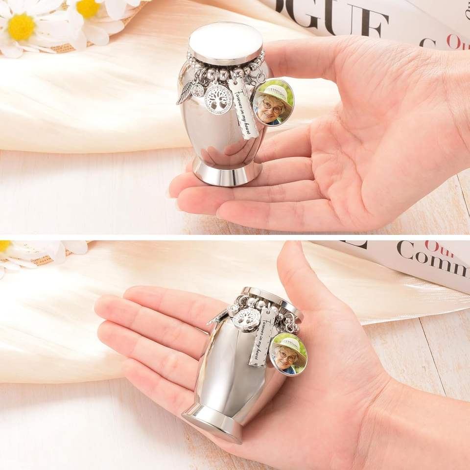 Urnes personnalisées en arbre d'argent pour cendres humaines Urnes de souvenir avec breloque en croix Mini urnes de crémation pour cendres en acier inoxydable Taille personnalisée