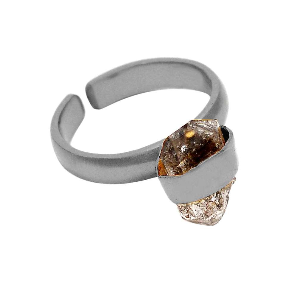 Bague Herkimer en argent brut poire