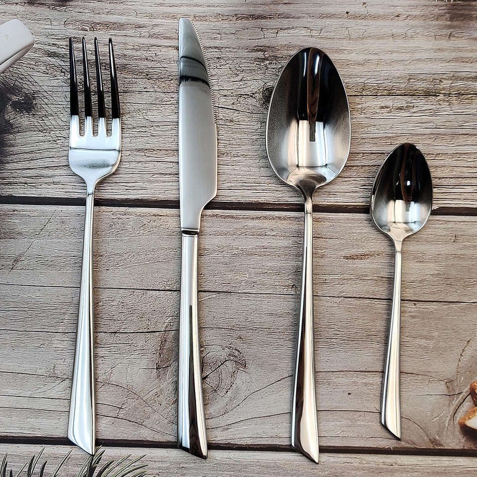 Ensemble de couverts en acier inoxydable avec couteau, cuillère et fourchette polis miroir, lavable au lave-vaisselle, pour les mariages