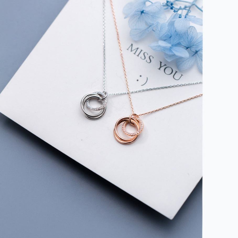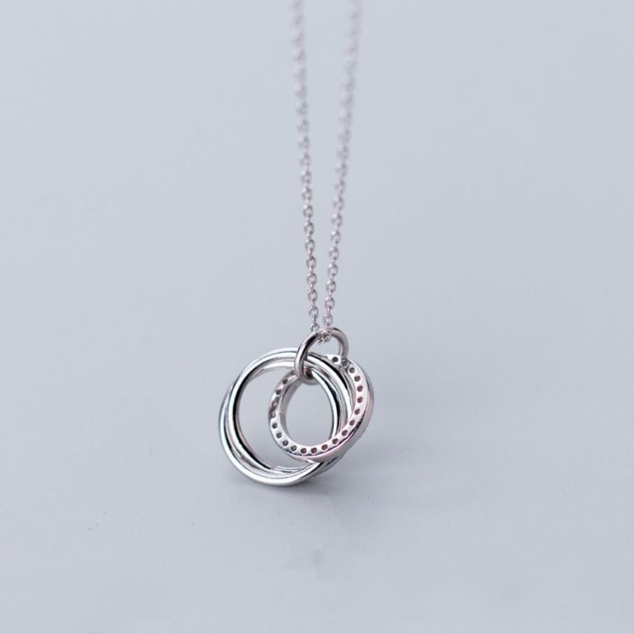 Collier pendentif double cercle en argent sterling 925 plaqué rhodium avec zircon, certifié CMA, tendance, pour femmes et enfants