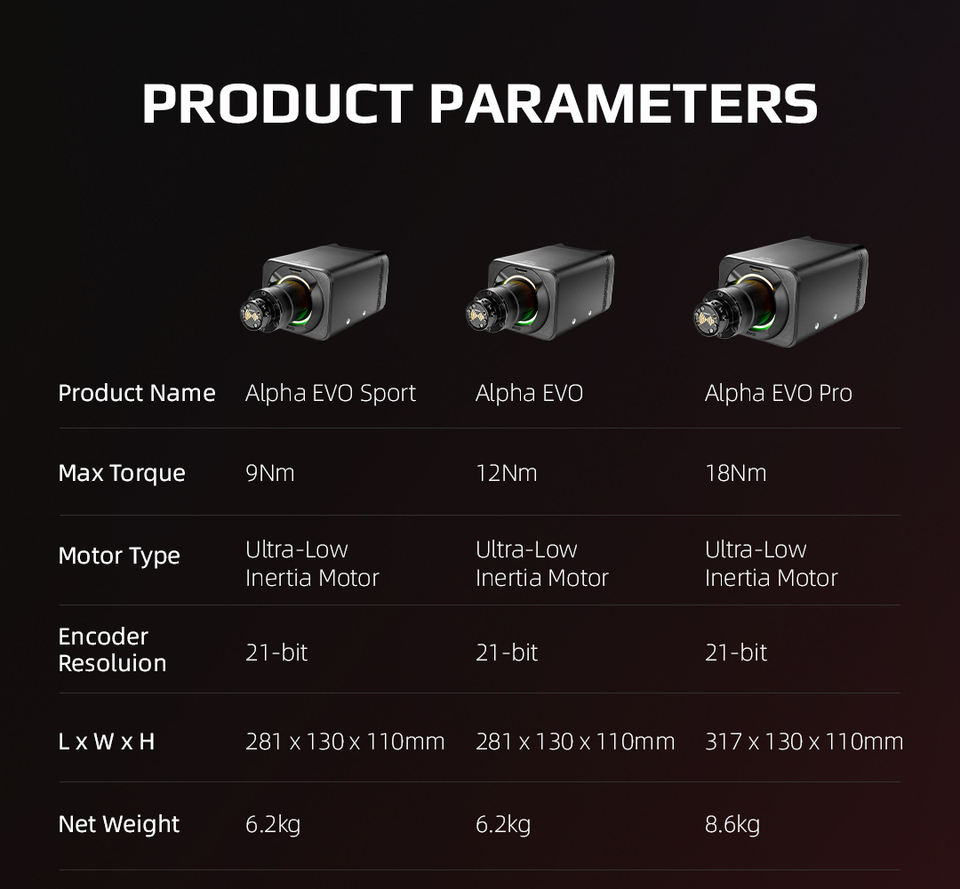 Simagic Alpha EVO base de volant modèle Tz019 – 9/12/18 Nm pour simulateur de course, fabriqué en Chine continentale