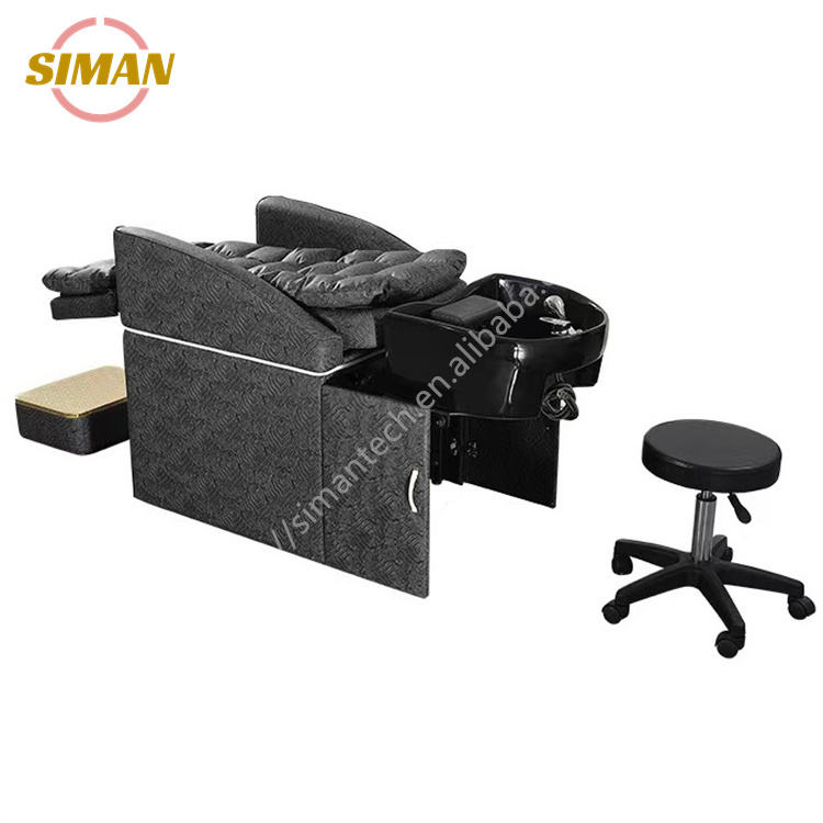 Siman Salon Equipment Massage Reclining Sofa Special Price Chair Head Basin Can Be Stored Hidden Shampoo Bed for Barber Shop
