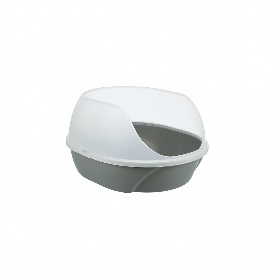 Bac à litière pour chat Simao gris à rebord haut 48 x 30 x 58 cm, plateau hygiénique