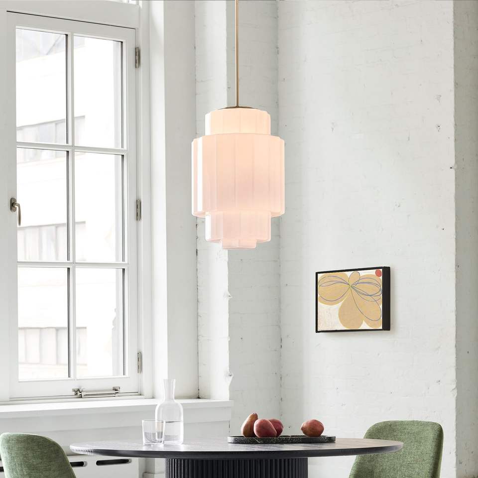 Simig Lighting Modern Winry Antique Brass Tiered Milk Glass Jules Pendant Lamp
