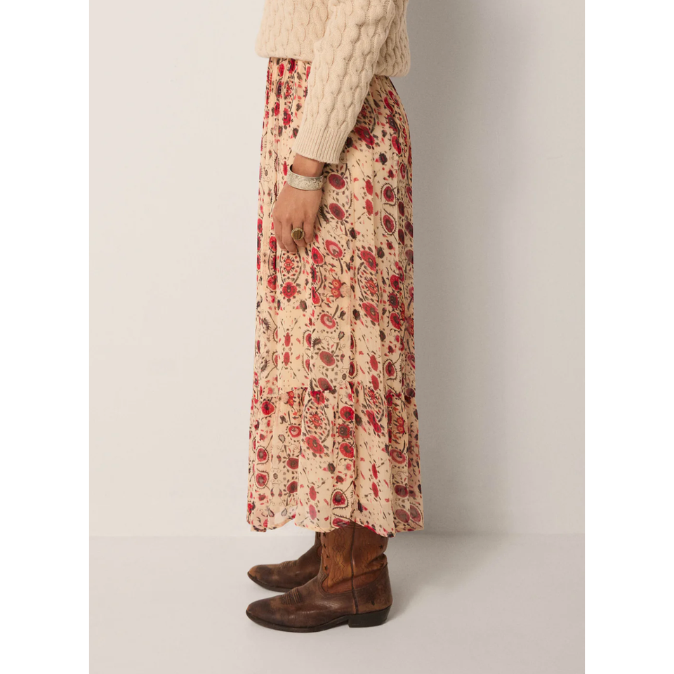 Jupe midi plissée formelle Simone Spring Coquelicot Coquillage – Respirante, douce, en viscose et denim, taille élastique, tricotée
