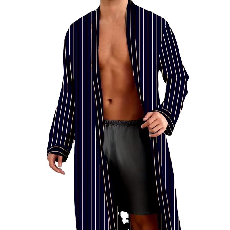 Simple And Soft 100% Silk Satin Men's Sleepwear Robes Customized Summer Silk Bathrobe High Quality With Custom logo