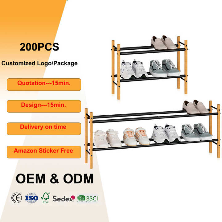Range-chaussures simple en bambou, portable, empilable, à double niveau, avec structure métallique détachable, multifonctionnel, pour salon