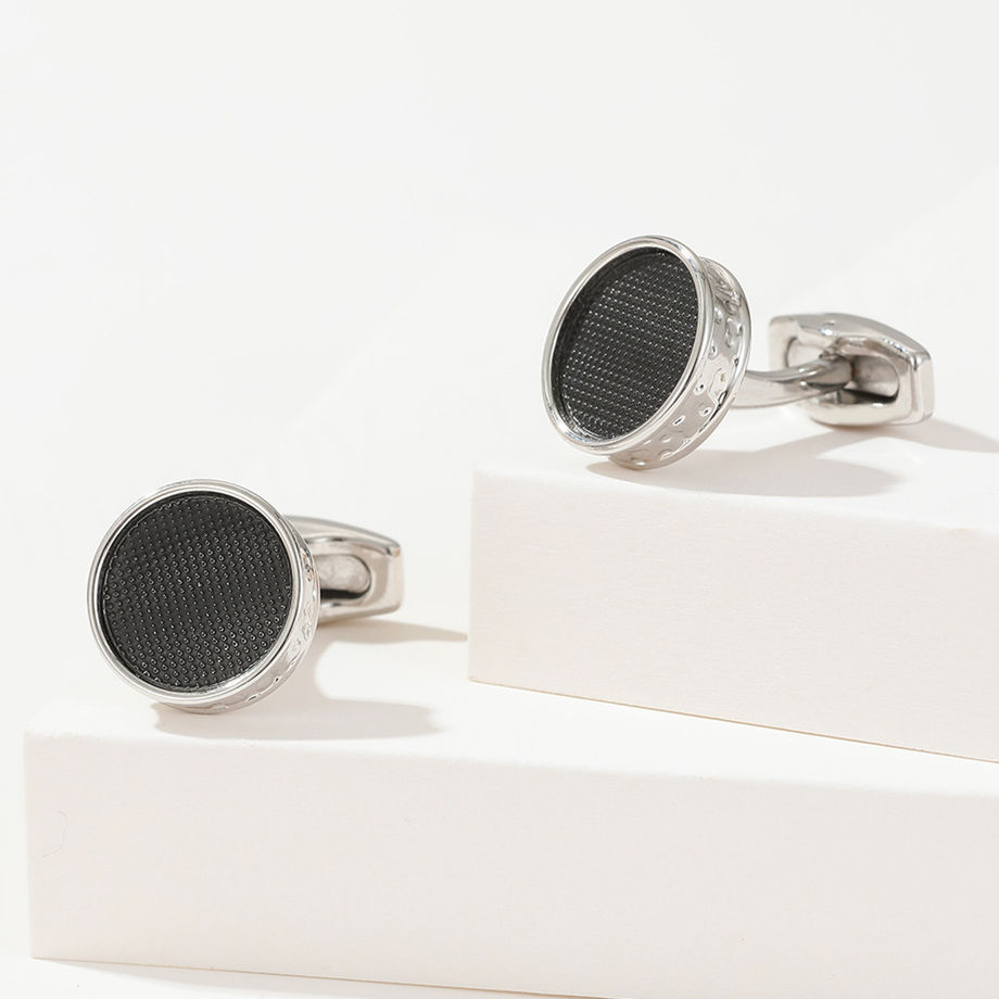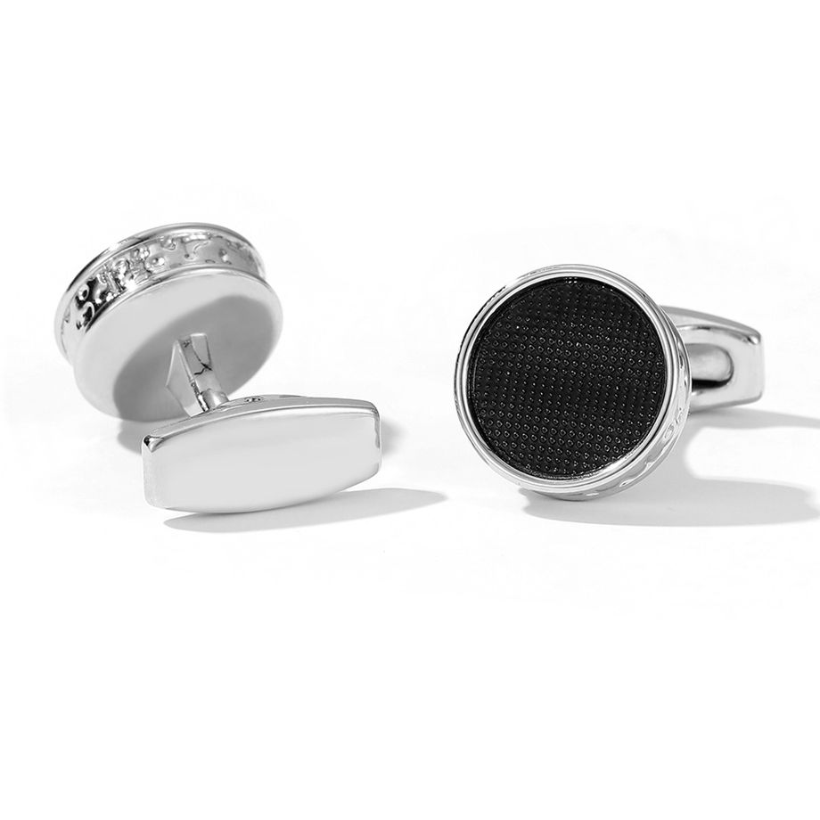Boutons de manchette simples en alliage d'argent rond noir pour hommes en stock