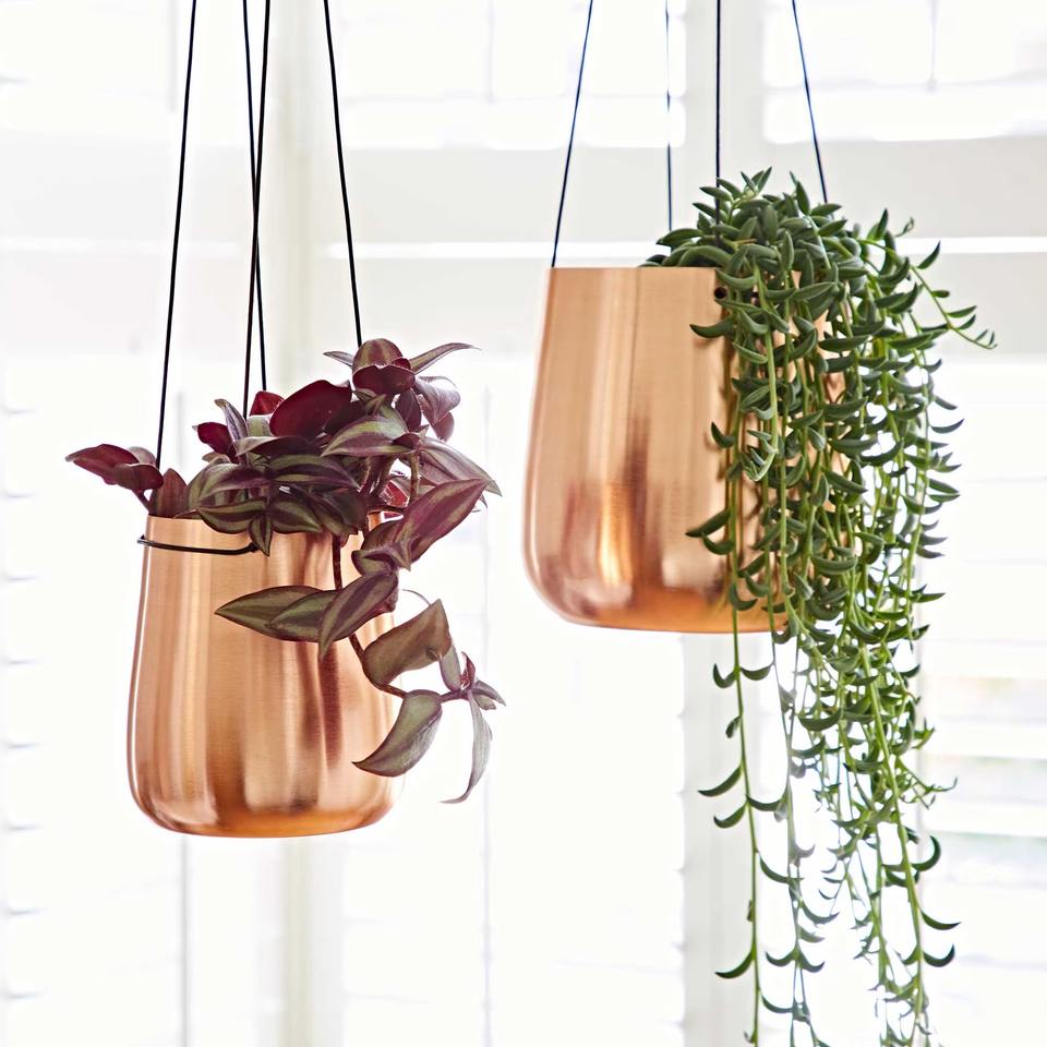 Jardinière murale simple en métal finition cuivre pour la décoration de cuisine, entrée, balcon, fenêtre et jardin