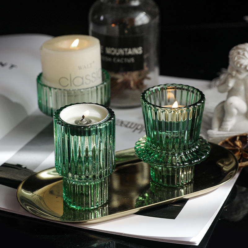 Bougeoir en verre vert cristal créatif simple pour Bar Restaurant café ornements décoratifs de noël Base de bougie de veilleuse