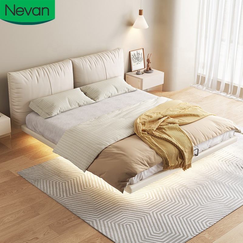 Mobilier de chambre au design simple tête de lit confortable personnalisée à bas prix Lit rembourré blanc de luxe queen size avec rangement