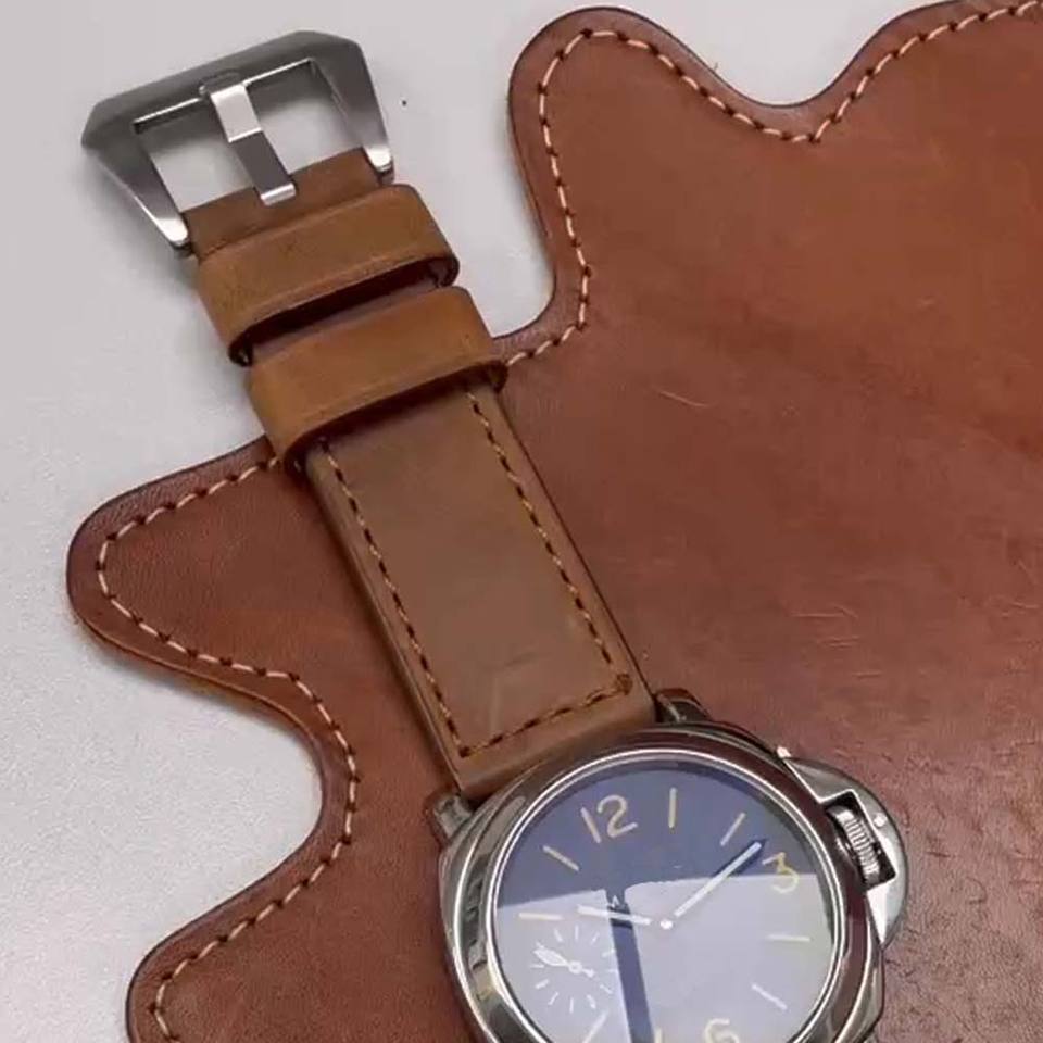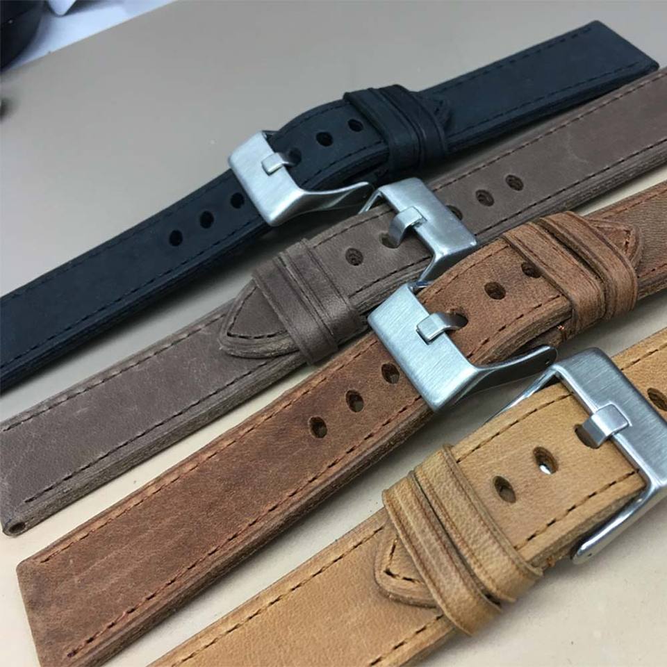 Bracelets de montre vintage en cuir de veau Crazy Horse italien souple au design simple, 24 mm 22 mm, bracelet de montre avec doublure en cuir tanné végétal