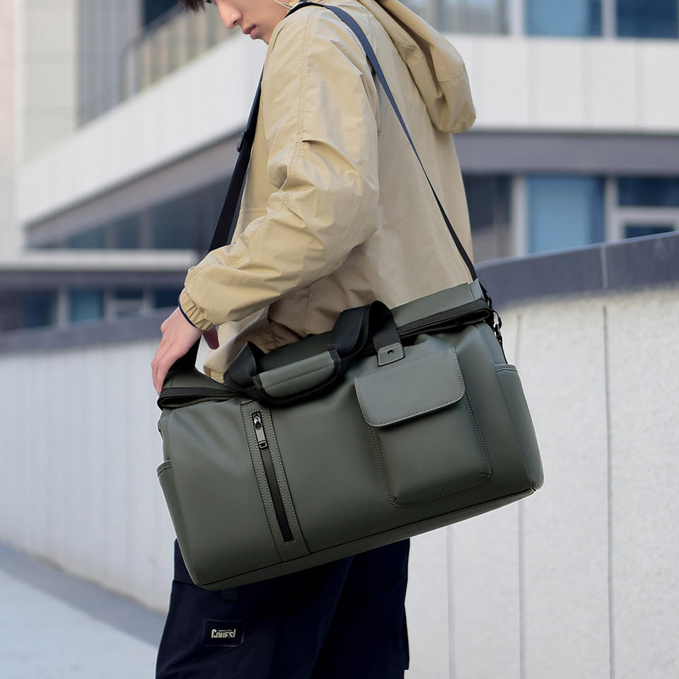 Sac de voyage à roulettes en nylon pour homme, design simple, avec compartiment sec/humide, idéal pour les affaires